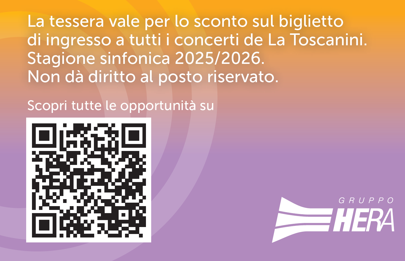 La card Hera ti dà il diritto di ingresso ai concerti della Filarmonica Toscanini con il biglietto a prezzo ridotto.